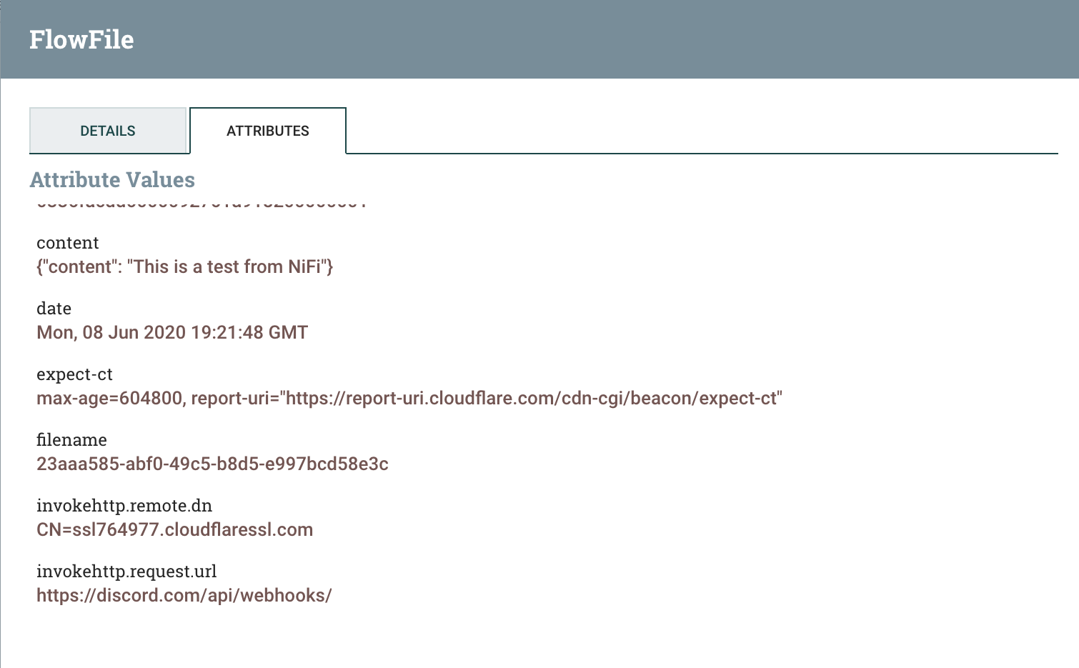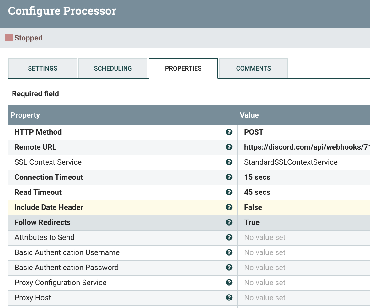 You then copy the webhook URL and you are ready to call. It's a long SSL link, just past that into the InvokeHTTP processor.