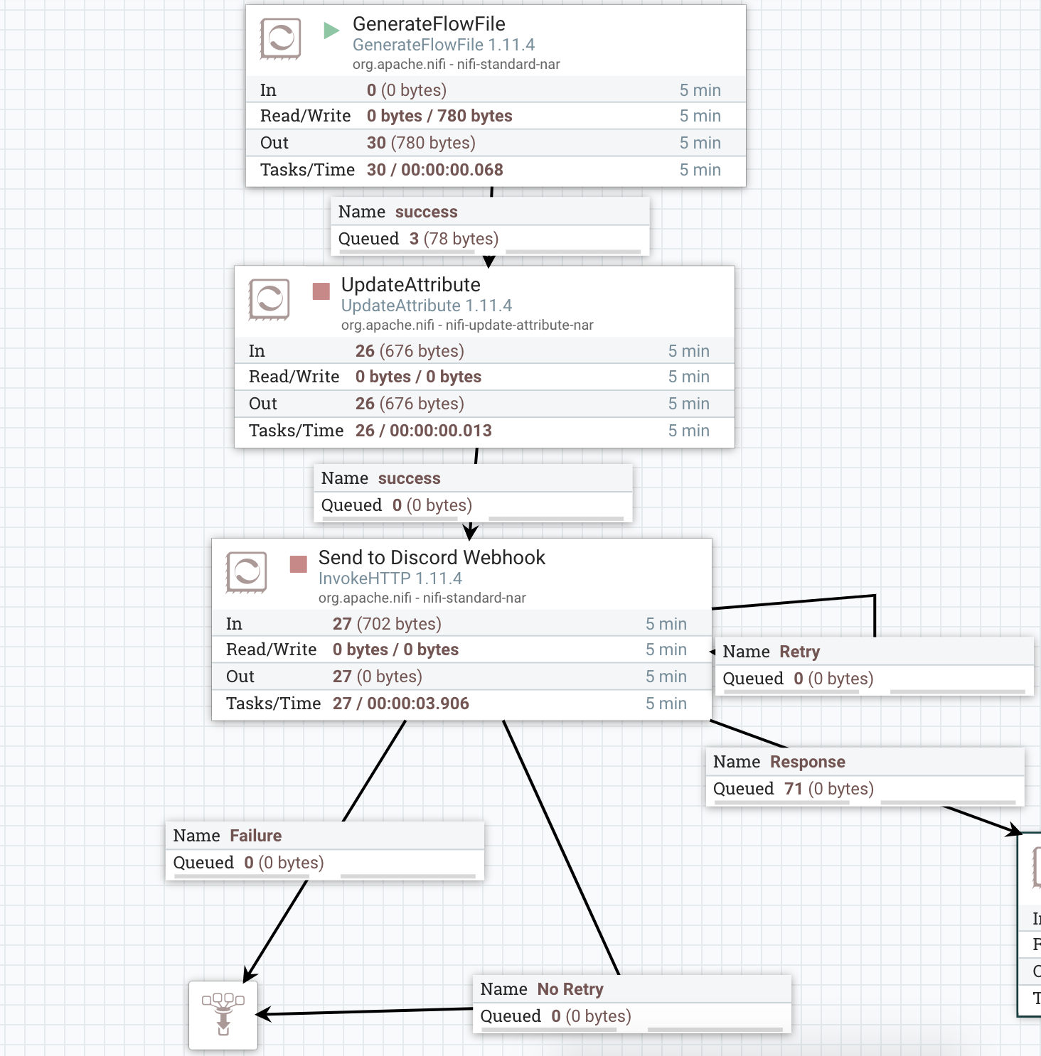 The output will not have a body but there will be cool headers if you want to save them or use them for processing. Otherwise wrap this in a process group and you have an alert system of your own.