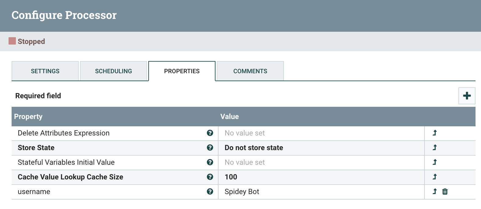 Before we call the InvokeHTTP we need to set the username of the bot.