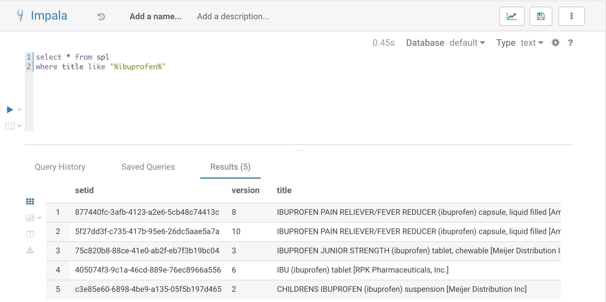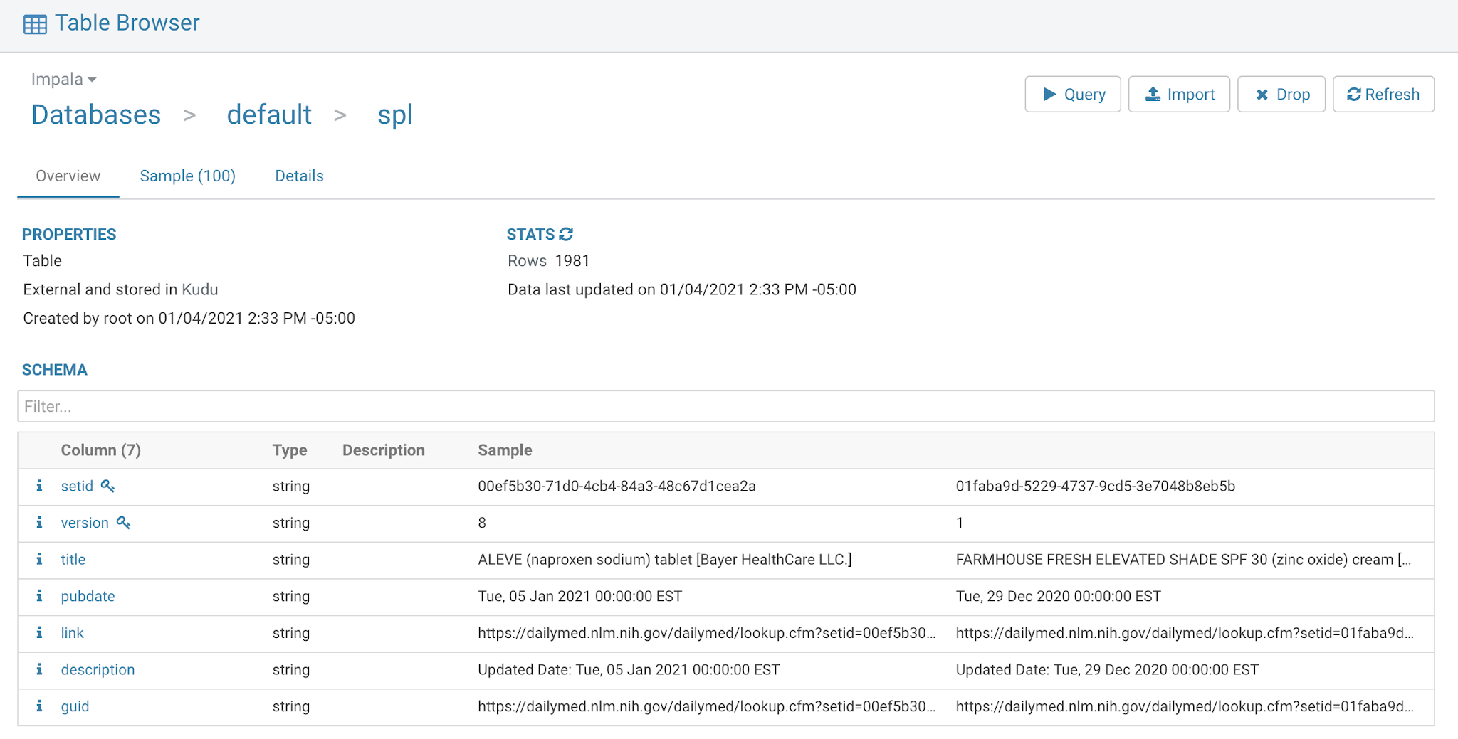 We have created an Impala/Kudu table to cache this information with Apache Hue.
