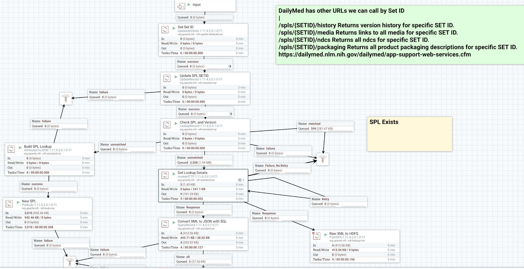So with some simple NiFi flow, we can ingest all the new updates to DailyMed and not reprocess anything that we already have.