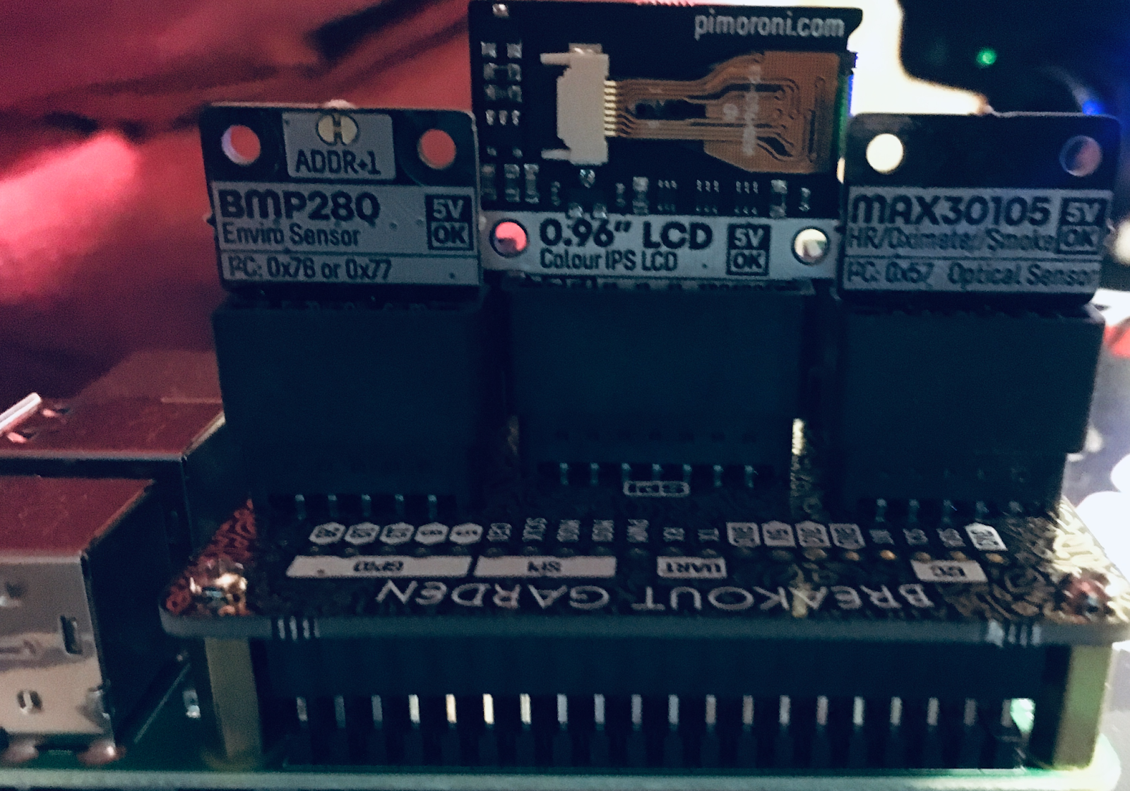 Our Raspberry Pi 3B+ has a Breakout Garden Hat with 2 sensors and one small display. The display is showing the capture image and is constantly updating.