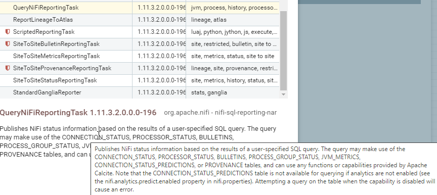 Let's add some Reporting tasks that use SQL!!! QueryNiFiReportingTask.