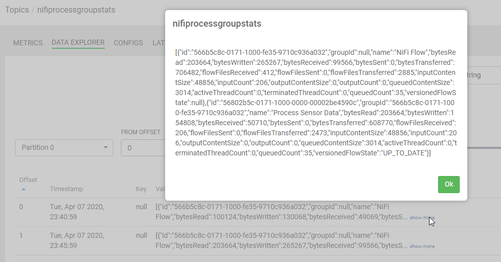 Let's look at data as it passes through Kafka, in the follow up to this article we'll land in Impala/Kudu/Hive/Druid/Phoenix/HBase or HDFS/S3 and query it. For now, we can examine the data within Kafka via Cloudera Streams Messaging Manager (SMM).