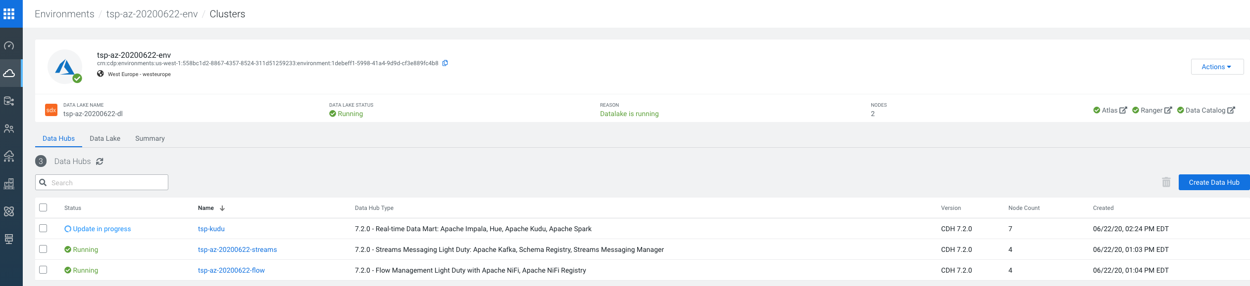 Let's configure out Data Hubs in CDP in an Azure Environment. It is a few clicks and some naming and then it builds.