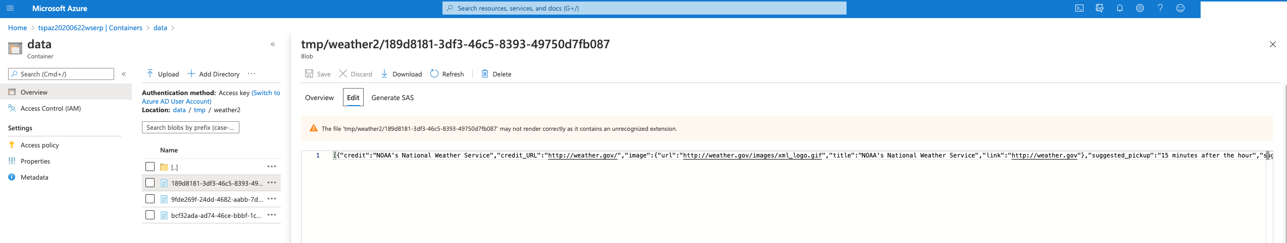 In Azure, we can examine the files we uploaded to the Azure object store.