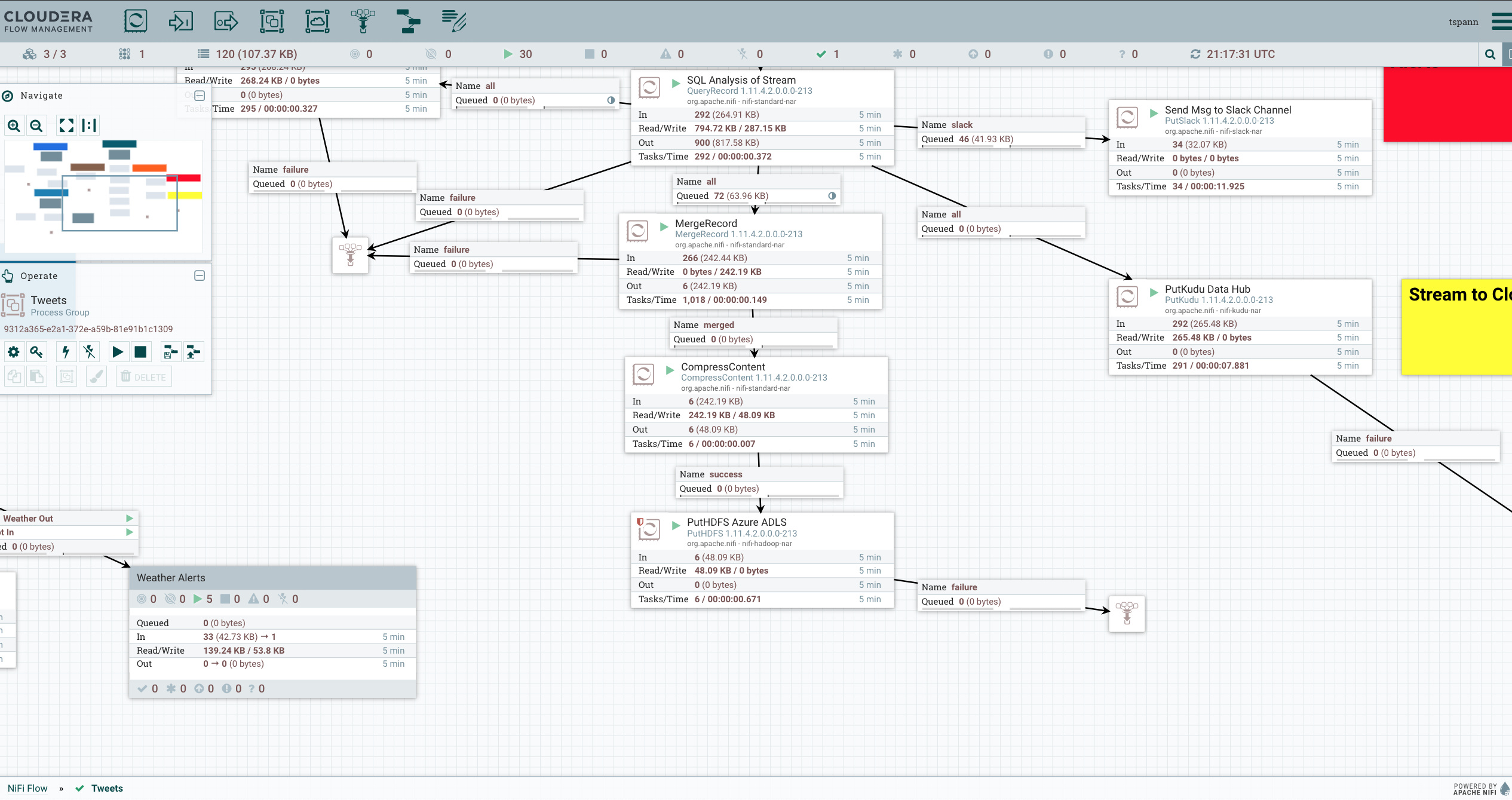 We can also see the flow for NiFi, HDFS and Kudu.