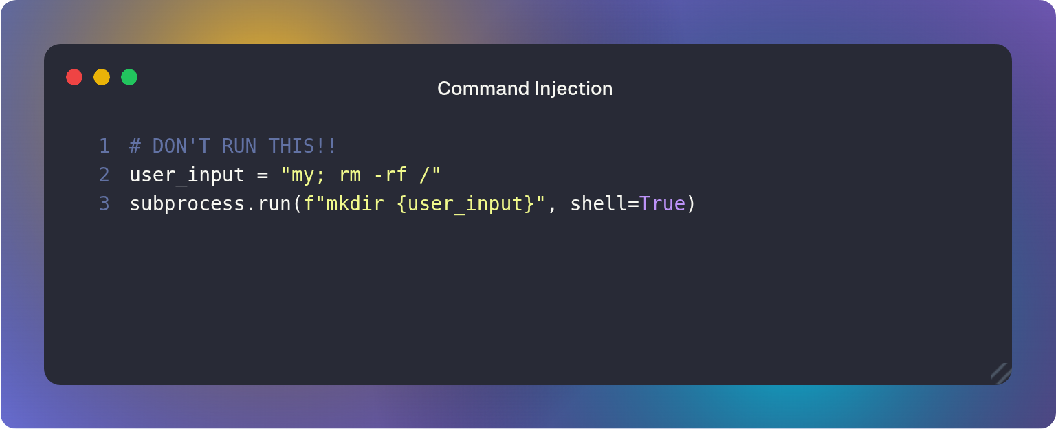 Command Injection is not just a theoretical problem. Last year, a high severity vulnerability was found to affect all Python versions <= 3.13: