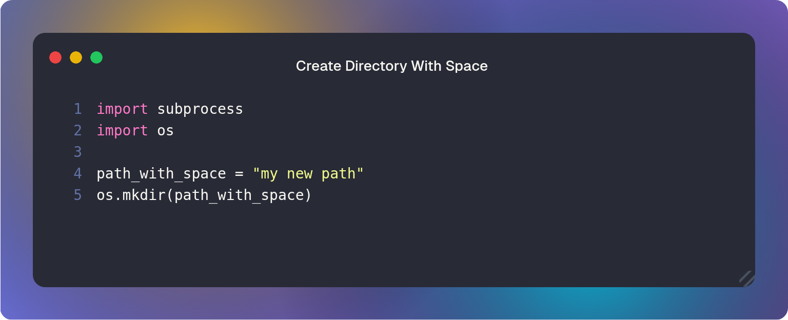 module it understands the path as a single string because it does not involve the shell's interpretation. The directory is created as intended with a space in its name.
