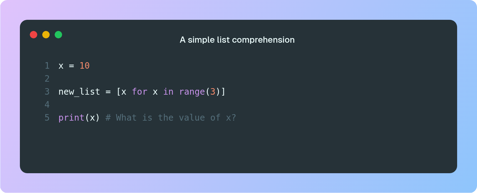 in the comprehension is a new x