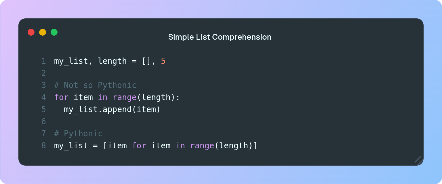 List comprehensions are one of the most popular features in Python, and it allows us to write idiomatic (or Pythonic) code.